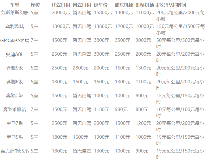 特别备注:以上报价仅供参考,因本公司是连锁区域不同,价格具体以实际用车为准。